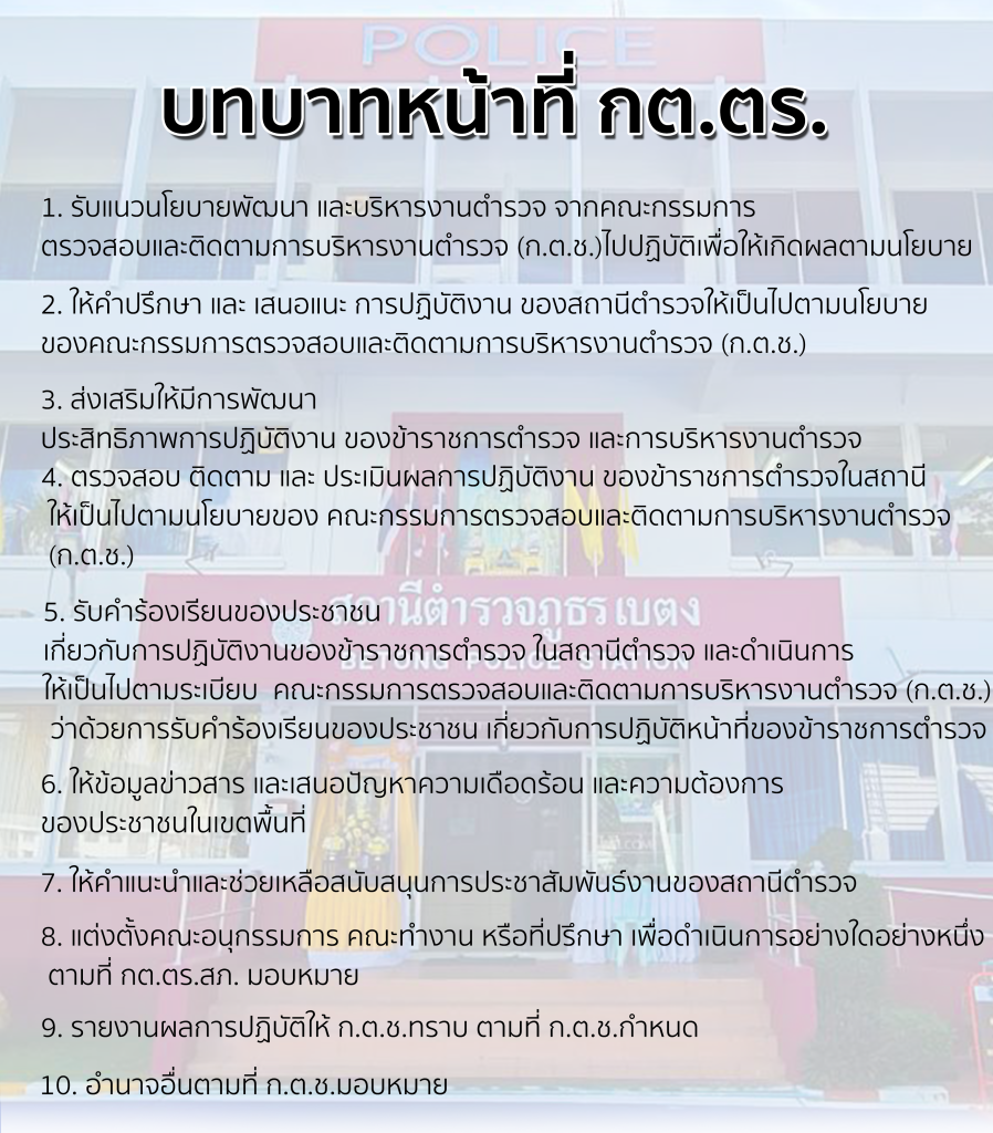 Home » 04/68 ข้อมูลคณะกรรมการตรวจสอบติดตามการบริหารงานตำรวจ (กต.ตร.) ของสถานีตำรวจ