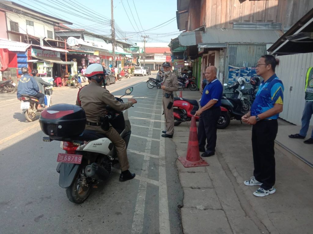 วันที่ 21 ธันวาคม 2566 ร.ต.อ.พงษ์ระพี ศิริพันธ์ รอง สวป.สภ.วังชิ้น, ร.ต.ท.พยุงศักดิ์ คำจันทา กต.ตร.สภ.วังชิ้น พร้อม สายตรวจ, จราจร, พนักงานเทศบาลกวดขันวินัยการจราจร บริเวณหน้าตลาดสดเทศบาลวังชิ้น